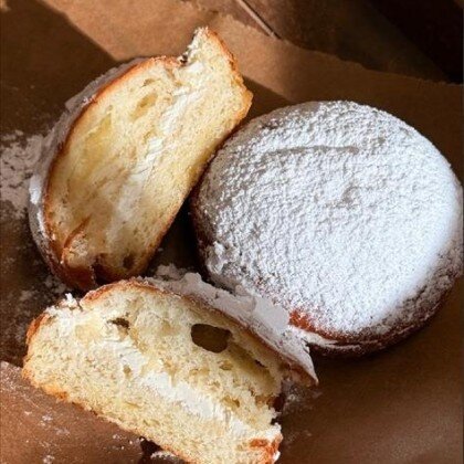 Нежная булочка с заварным кремом и пряным карамельным яблоком внутри.