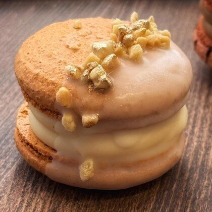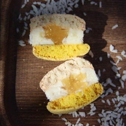Крышечки на основе миндальной муки с ганашом на белом бельгийском шоколаде с добавлением ликера Бейлис.