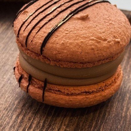Крышечки на основе миндальной муки с самым шоколадным ганашом и и сочным насыщенным бисквитом брауни внутри.