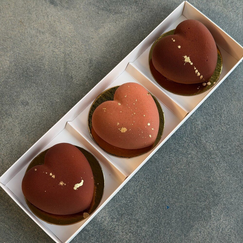 Оформляется по предзаказу на 12-15 февраля. Муссовые сердца ассорти с начинкой сникерс в подарочной коробкочке с лентой.