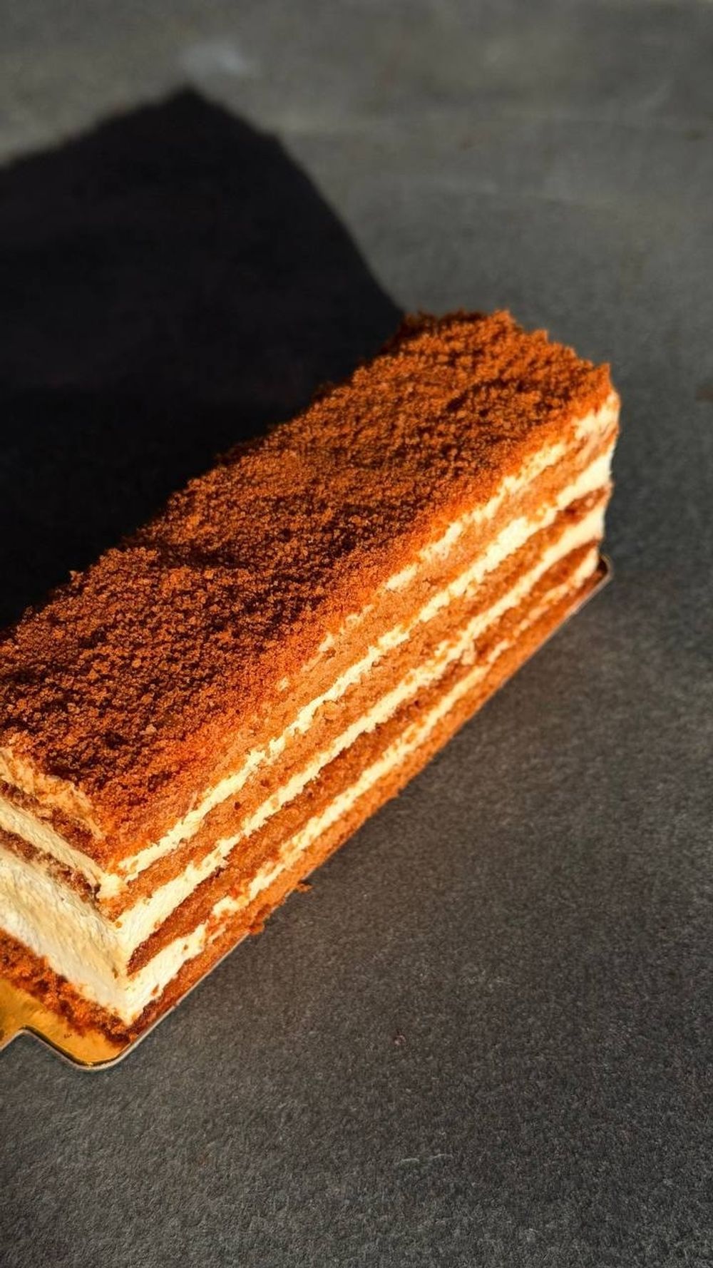 Нежные пропитанные медово-карамельные коржи со сметанно-карамельным кремом.