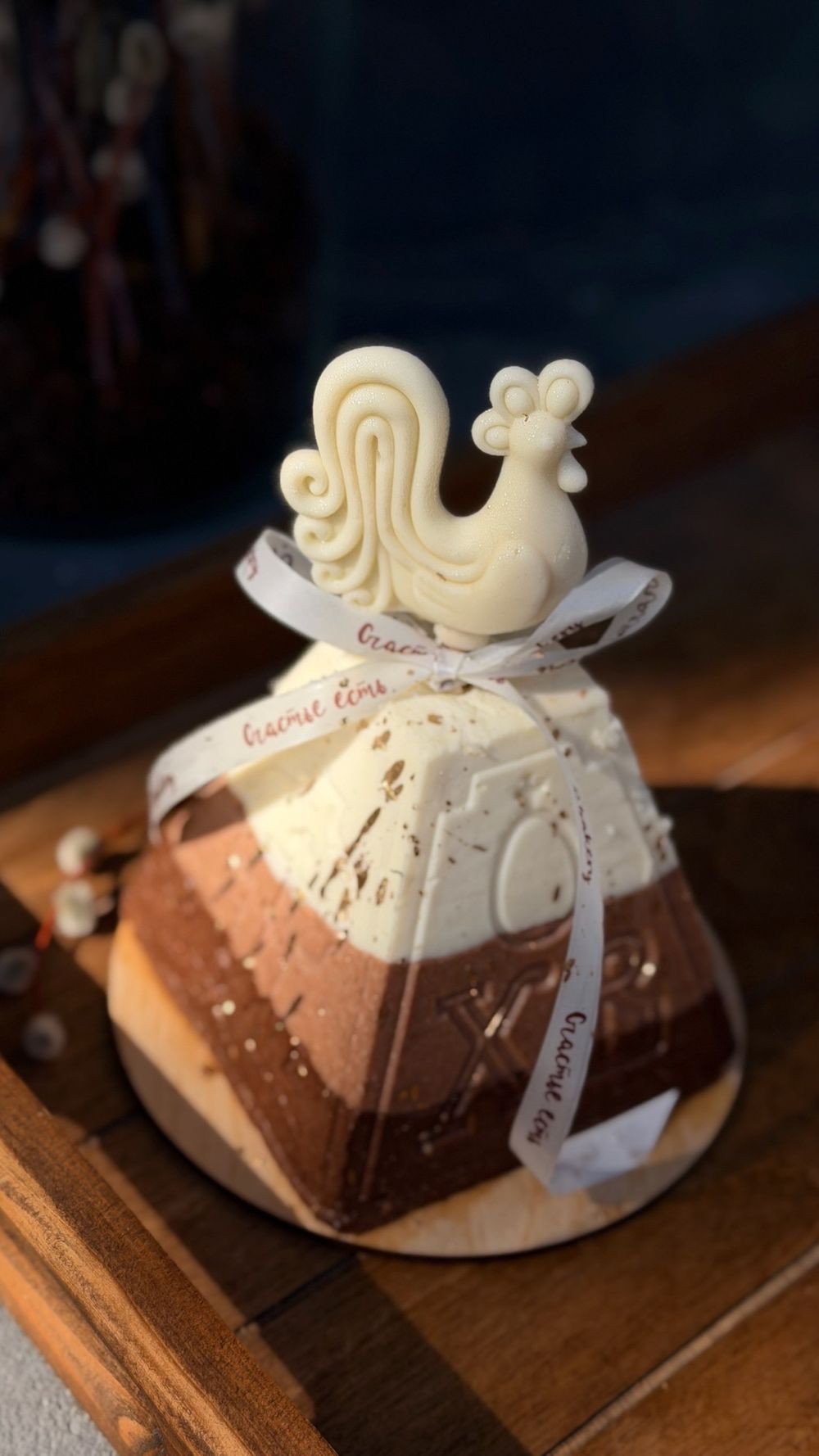 Классическая Творожно-сливочная масса но с добавлением белого, молочного и темного бельгийского шоколада, а так же с добавлением в слои шоколадного бисквита. Идет в подарочной упаковке с лентой.