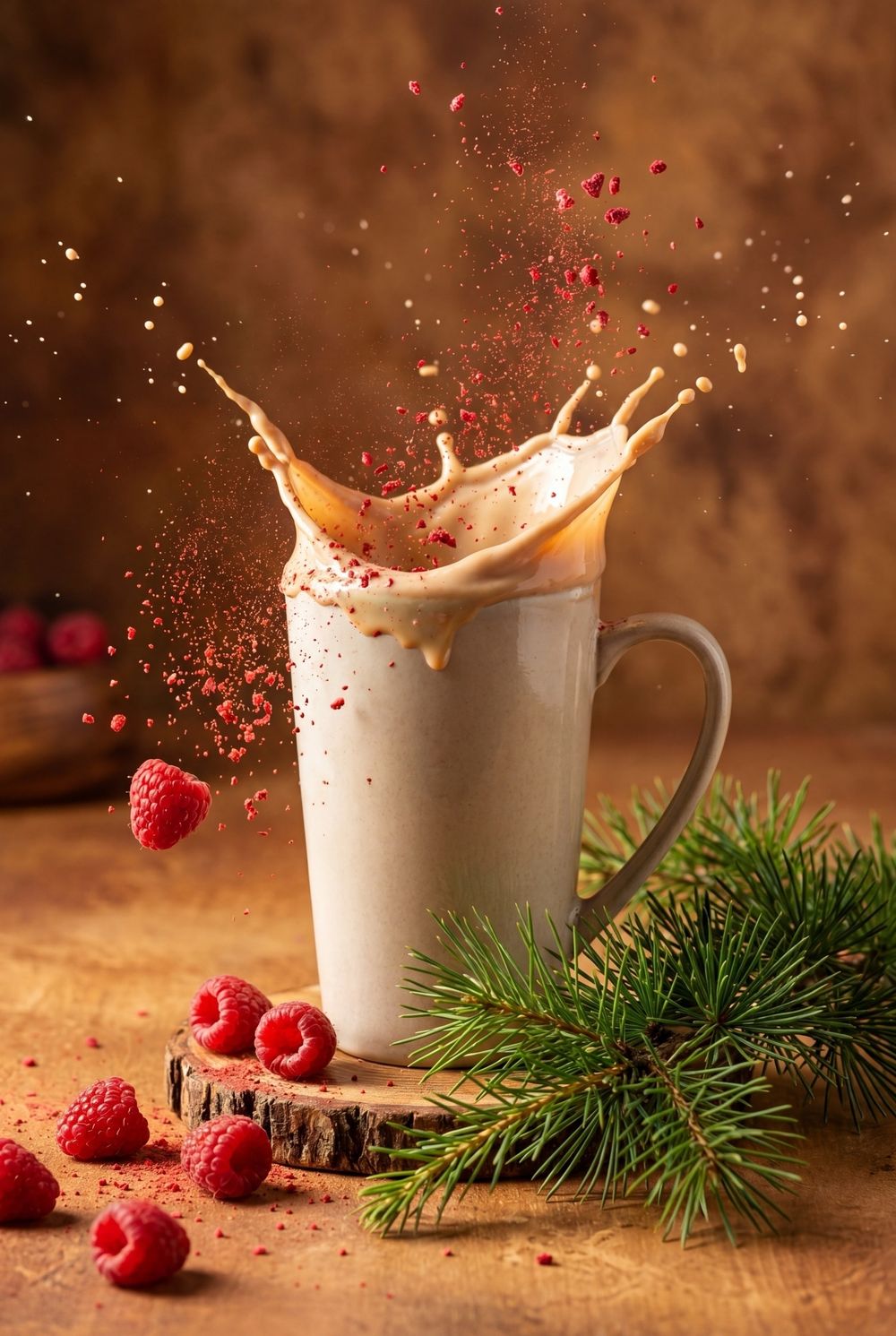 Тёплый бархатный латте с яркой малиной и тонкими кедровыми нотами.
